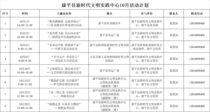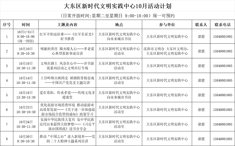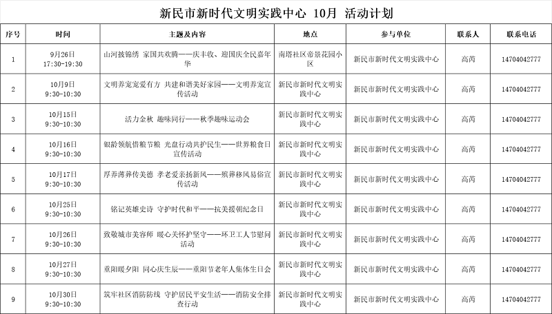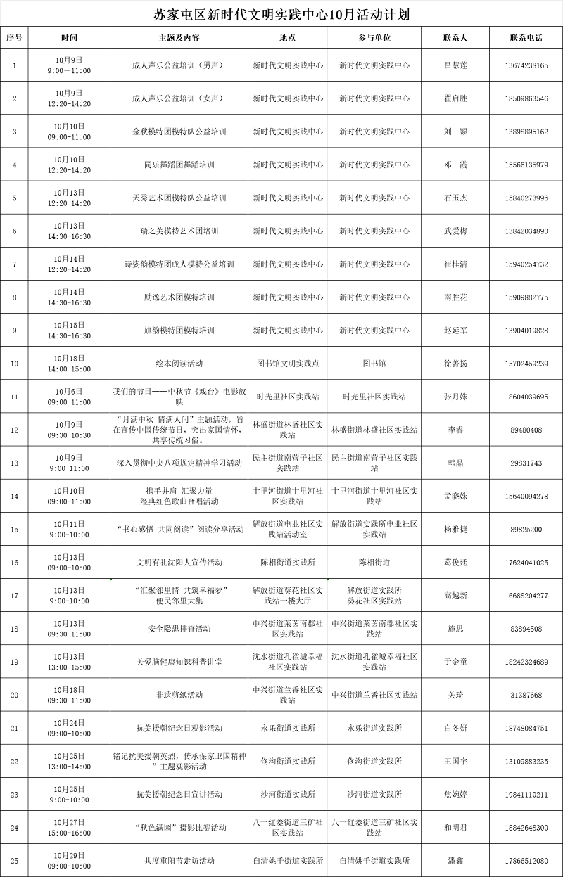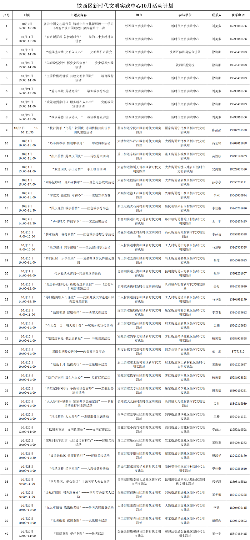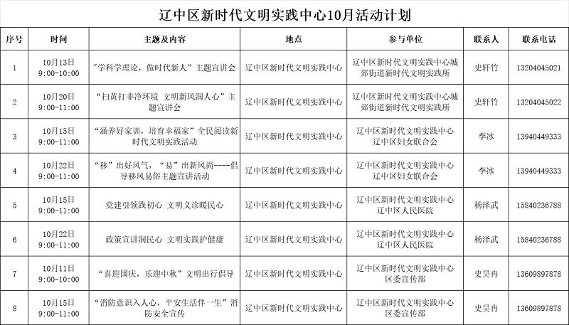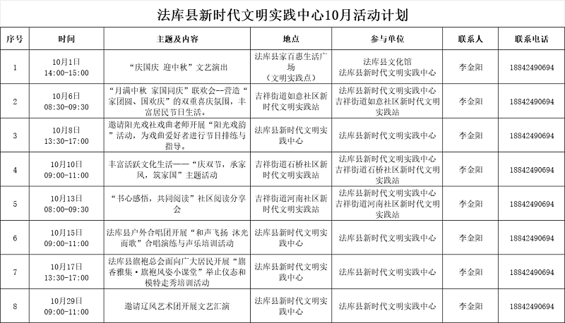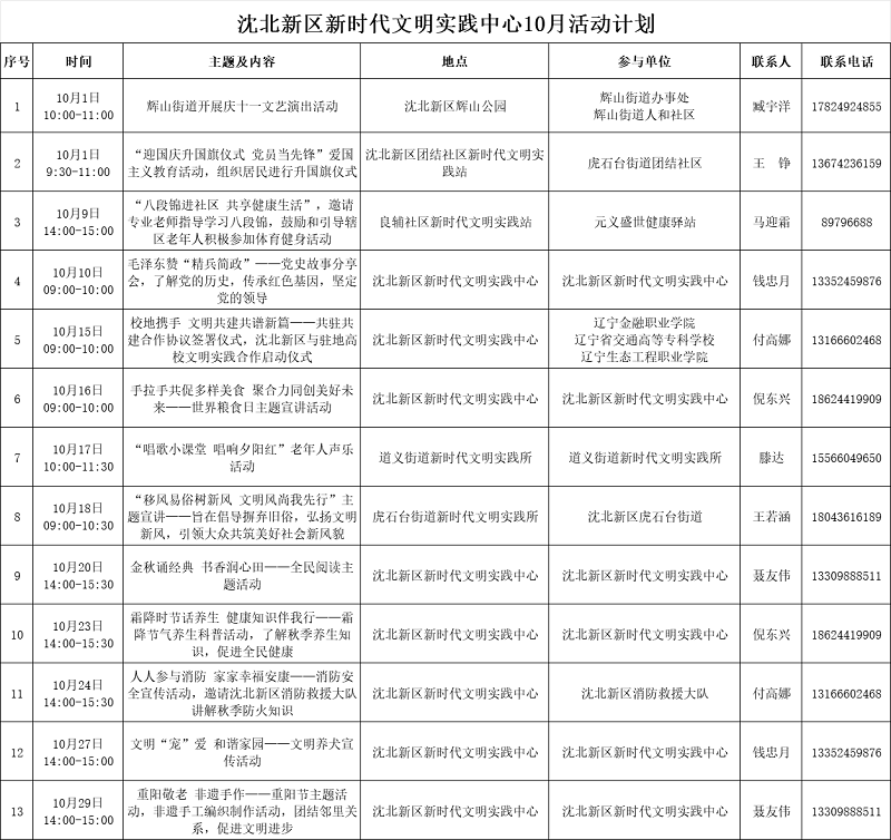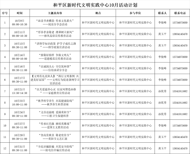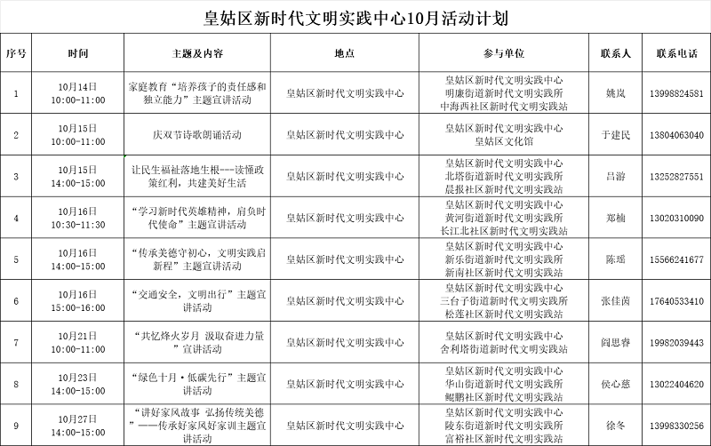 10月份,全市13个新时代文明实践中心围绕文明实践宣讲、文化惠民活动、消防安全宣传、全民阅读活动、移风易俗宣传等内容,推出各类文明实践活动165场(含部分文明实践所、站策划的个别特色活动),欢迎您的参与!