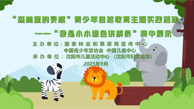 为深入践行习近平生态文明思想,扎实推进青少年自然教育,引领少年儿童在实践体验中成为生态文明理念的传播者,沈阳市儿童活动中心积极响应国家林业和草原局宣传中心、中国青少年宫协会、中国儿童中心、中国林学会等单位联合开展的“童心向党 筑绿中国”青少年生态文明教育主题宣传实践活动,精心组织了“森林里的灵感”青少年自然教育主题实践活动,并成功举办“我是小小绿色讲解员”集中展示活动。