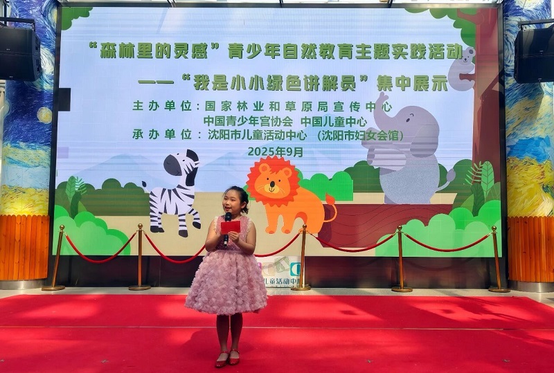 在此次活动中,沈阳市儿童活动中心从千余名小学员中选拔出二十余名来自全市各校的小学生,他们通过单人讲解、双人对讲、集体讲解等多种形式,登上舞台分享自己的自然感悟。文化路小学刘珈溪的《蒲公英的启示—与自然共生的创造力》、浑南区第二小学张淞涵和小耶鲁幼儿园张涵玥的《寻找灵感 做绿色守护者》、文艺二校敦玥涵和南京一校黄子洋的《万物有灵 和谐共处》、浑南实验小学李俏妍和望湖路小学范新钰的《发现生命智慧 守护绿色家园》、沈阳市第七中学附属小学张铭彧的《认识“植物活化石”—银杏树》、文艺二校刘子慧的《松树的力量—致敬城市绿色卫士》等精彩节目,孩子们以生动的语言和稚嫩的声音,深情地表达了对大自然的热爱。他们讲述了森林、河流、飞鸟、土壤生物等每一种生命形式,都是大自然乐章中不可或缺的音符。在他们的引领下,大家共同完成了一次探索森林秘境、拥抱自然万物、追寻绿色文明的奇妙旅程。此次活动不仅是孩子们对自然之美的赞美,更是生态文明理念在他们心中生根发芽的有力见证,小小讲解员们将如蒲公英般,在沈城大地播撒对生态文明的热爱和绿色环保的感悟。