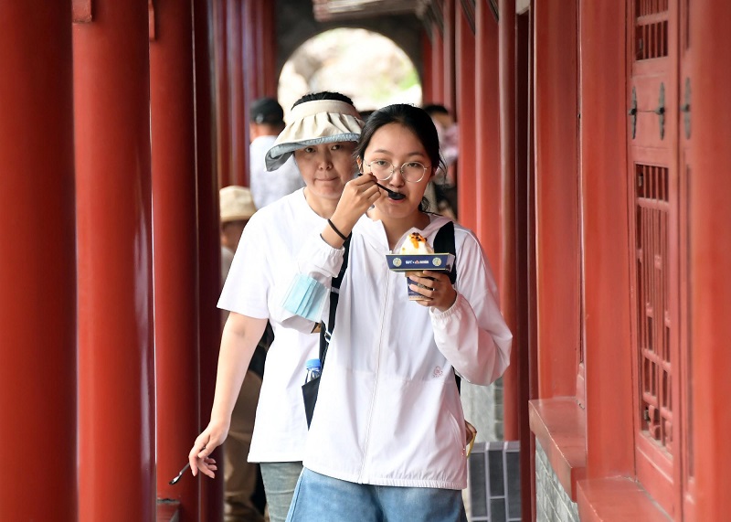 “沈水之阳,我心向往?!卑樗孀派蜓粑穆貌档纳?,一种被称为文创冰淇淋的冷饮产品在沈阳众多旅游景点悄然走红。在沈阳故宫,几乎随处都能看到游客手里拿着故宫大政殿、满族八旗铠甲等不同造型的文创冰淇淋拍照打卡,沈阳故宫文创糖葫芦更是成了小朋友手中最值得炫耀的“王炸”产品。
