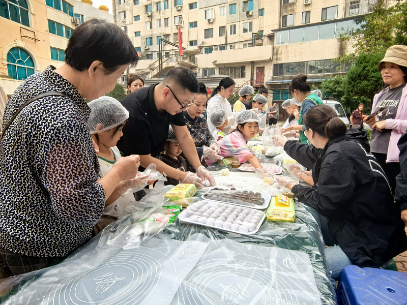2025年9月27日下午,滨河街道六合社区和光园小区广场红灯笼高挂,“中秋传雅韵 邻里聚欢情”第二次睦邻活动暖心开启。社区党委组织小区党员、业委会、居民、志愿者等齐聚现场,在手工月饼、民乐演奏与邻里家宴中共享中秋团圆时光。